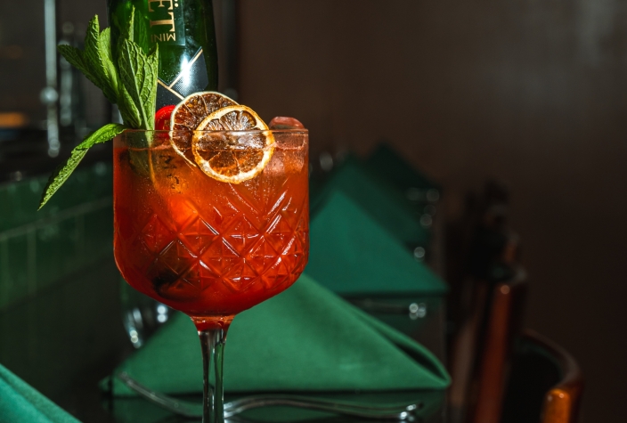 The next thing to add to your bar program is a signature or statement cocktail. Think of the “wow factor” cocktail that people see going through the dining room and need to order. For example, this picture shows a Mini Moet bottle in the glass which adds something different to the classic spritz. This is a cocktail that if seen in the dining room is going to demand attention.